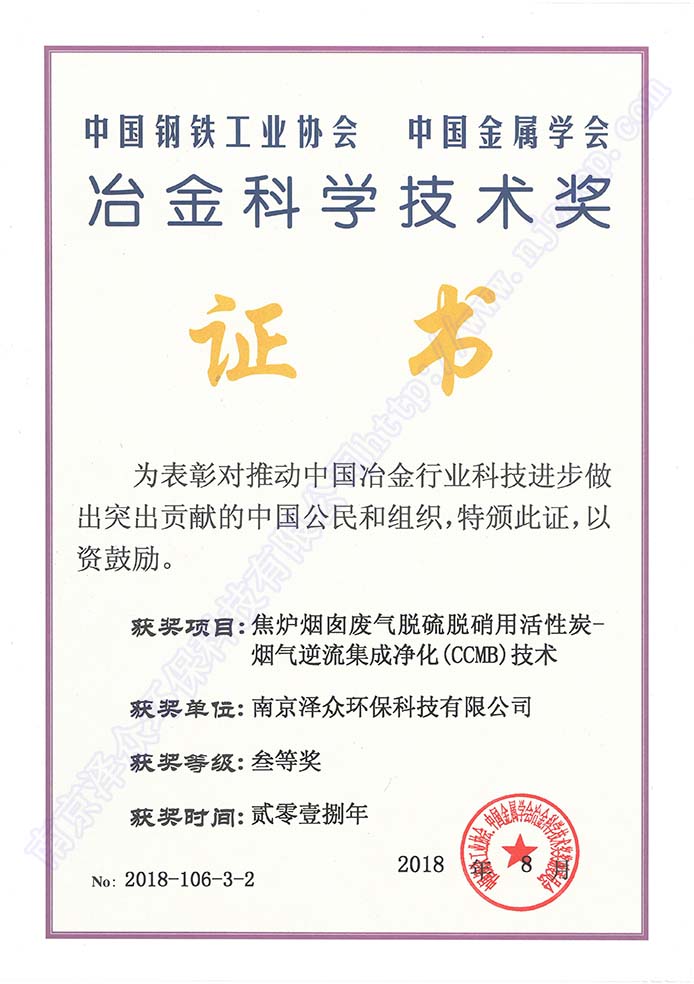 公司專(zhuān)長(zhǎng)于活性炭煙氣凈化技術(shù),創(chuàng)新能力突出,成功研發(fā)具有獨(dú)立自主知識(shí)產(chǎn)權(quán)的活性炭-煙氣逆流集成凈化CCMB(ActivatedCarbon Countercurrent Moving Bed)技術(shù),形成獨(dú)立自主知識(shí)產(chǎn)權(quán)體系,由中國(guó)金屬學(xué)會(huì)評(píng)價(jià)鑒定達(dá)到國(guó)際領(lǐng)先水平,獲得冶金科技三等獎(jiǎng),被評(píng)為“鋼鐵產(chǎn)業(yè)鏈綠色低碳好技術(shù)”,入選中國(guó)鋼鐵工業(yè)協(xié)會(huì)先進(jìn)節(jié)能環(huán)保技術(shù),入選生態(tài)環(huán)境部國(guó)家先進(jìn)污染防治技術(shù)目錄推廣技術(shù)。